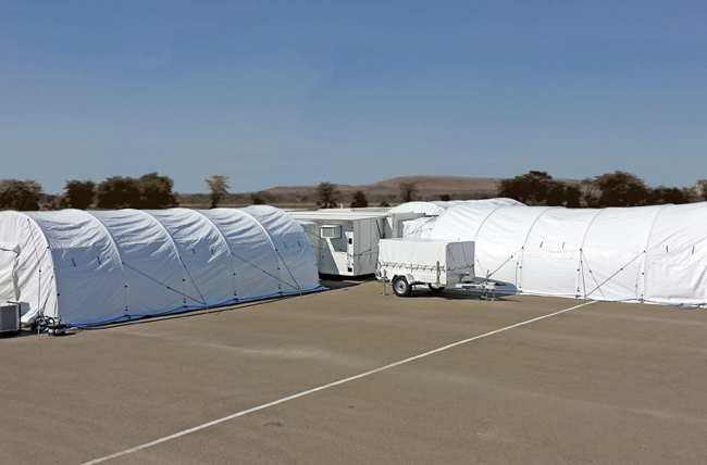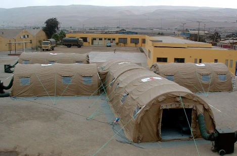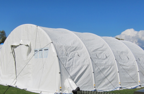 高压充气式帐篷(应急医疗帐篷)适用于移动医院、灾后应急救援、卫 生防疫、隔离、野外宿营、指挥中心等领域。压力可达6-8Bar,支撑力强,耐弯折,不易损坏,漏气,受环境温度影响小。帐篷内部空间大。重量轻,体积小。适应温度-45°C-70°C, 可相互连接,快速灵活部署,可空运折叠,压缩机充放气收展时间10-20分钟,可抗12级阵风。防水阻燃、可抗紫外线、稳固耐用。
